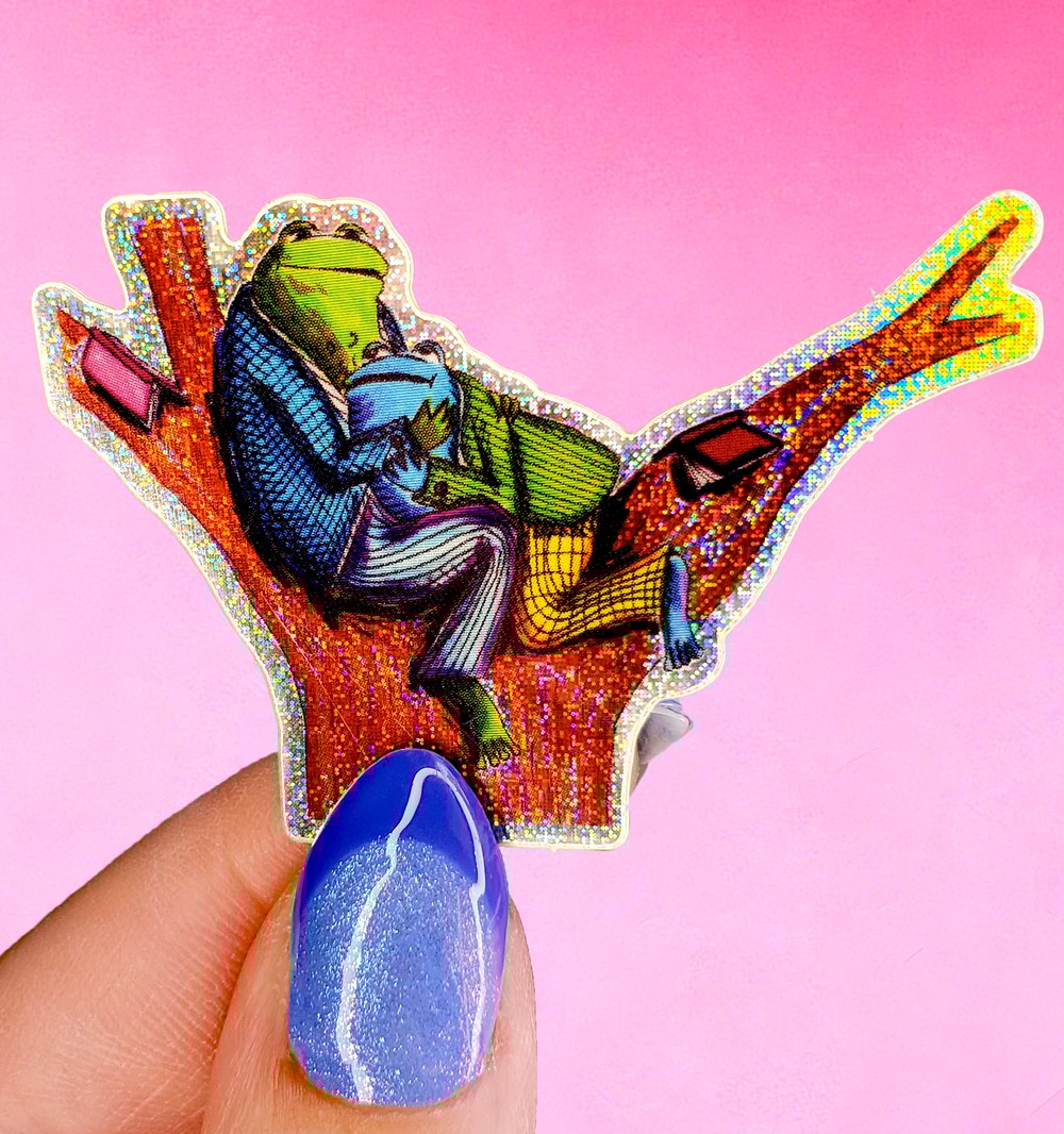 Slap this sparkly display of romantic amphibians on whatever you see first.